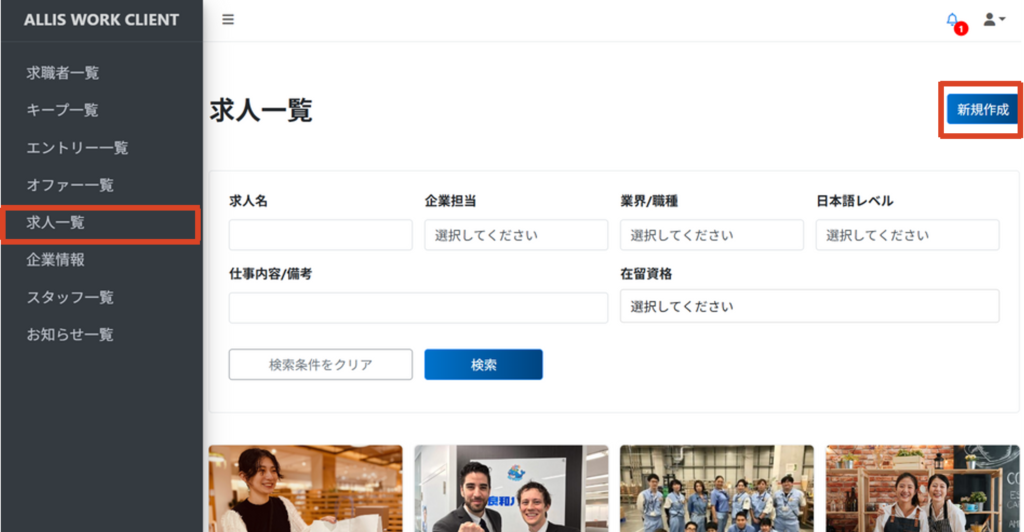 求人がシステムに登録され、求職者サイトに自動的に掲載されます。
