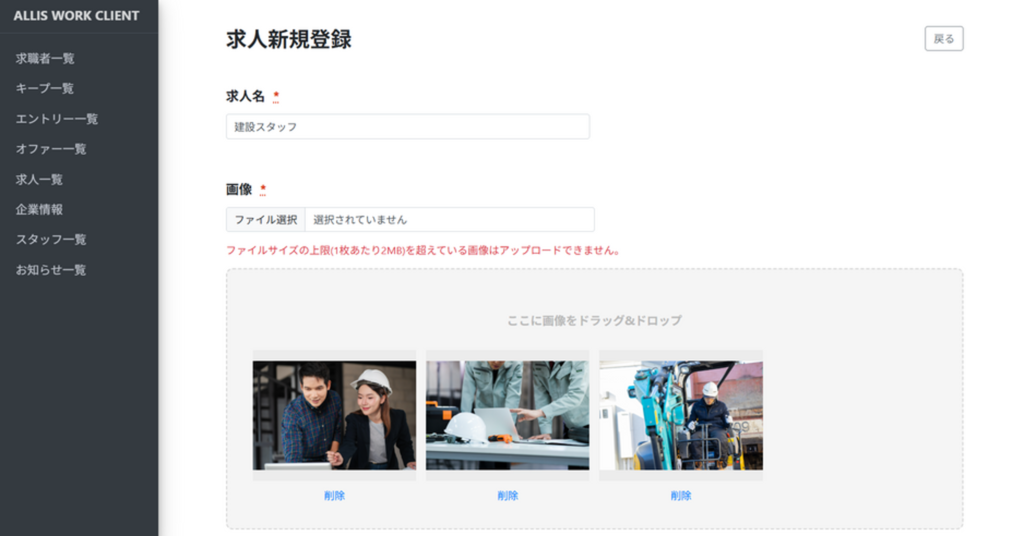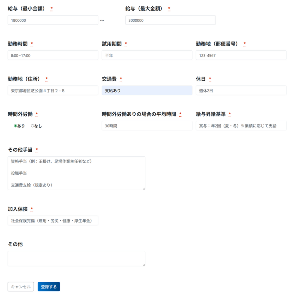 ②項目内容に沿って、求人情報を入力
