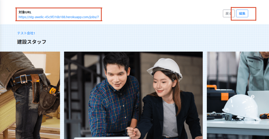 「対象URL」をクリックすると、実際に求職者向けに表示される求人ページが開きます。