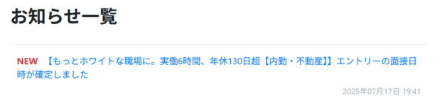 求職者が面接候補日を確定すると画面右上のベルマークに通知が表示され、お知らせ一覧から確認ができます。